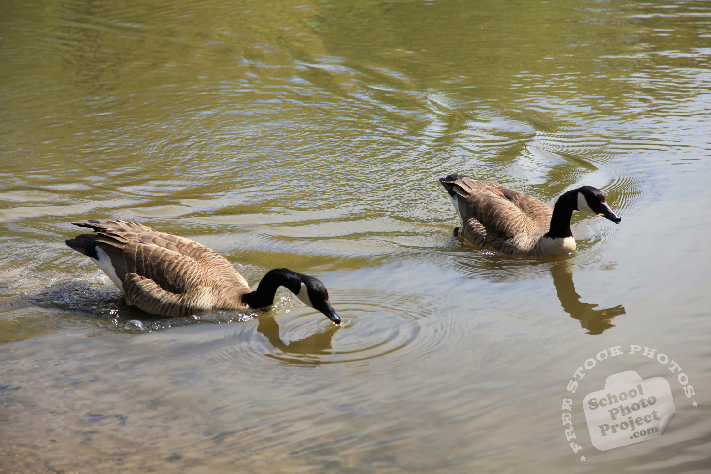 Canada goose, mature male female wild geese, swimming goose, wild bird, free animal stock photo, royalty-free image, school photo project use |
