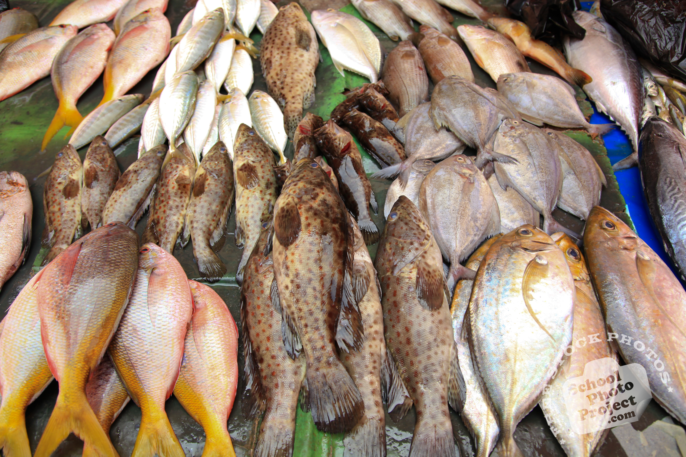 Free Photo Tags: saltwater fish, fish stall, fish market, seafood, free stock photo, picture, free images download, stock photography, royalty-free image, school photo project use