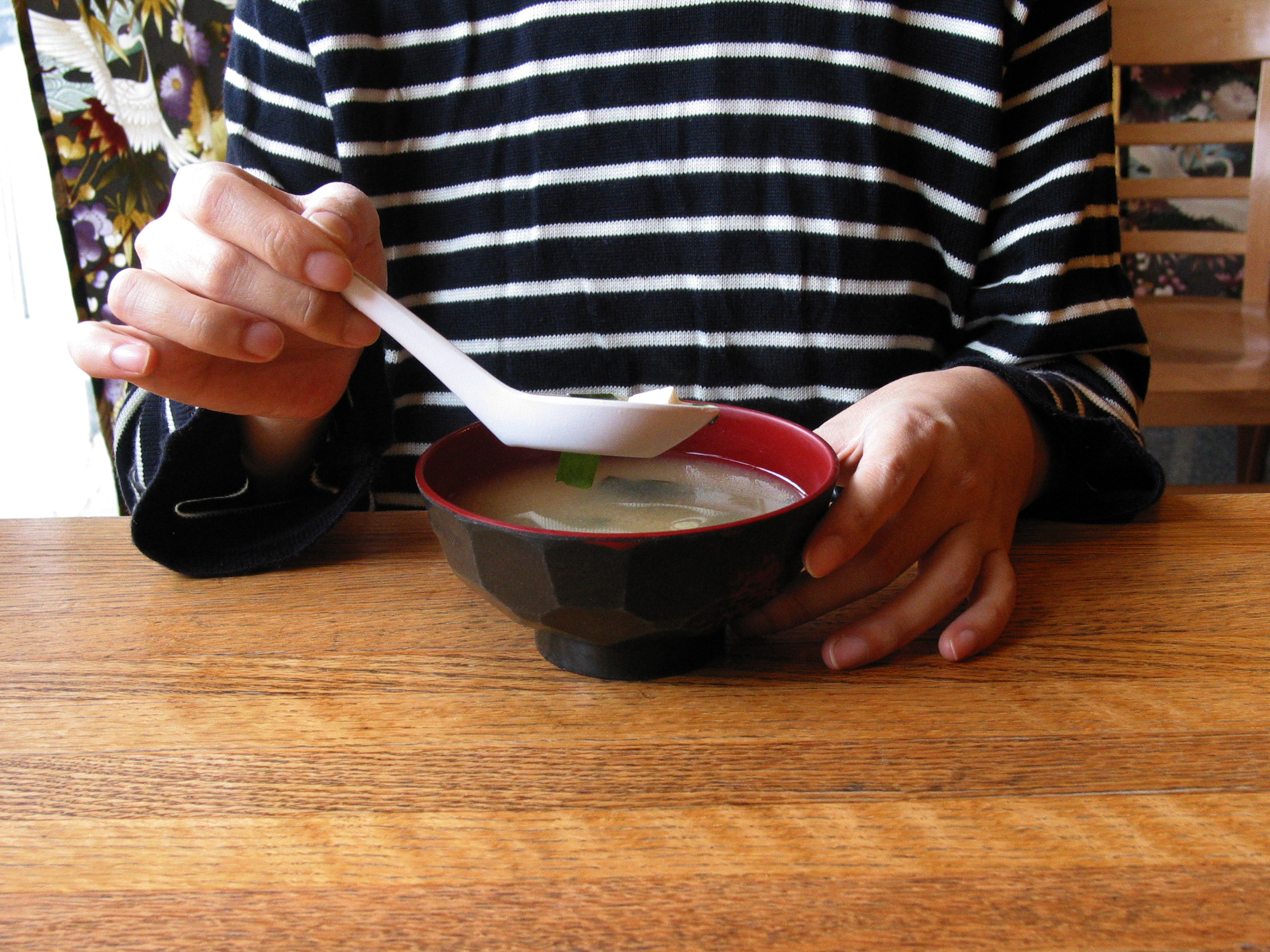 | Free Photo Tags: miso soup, drinking soup, Japanese food, bowl, chopsticks, table, free photo, free images, stock photos, stock images, royalty-free image, school photo project use |