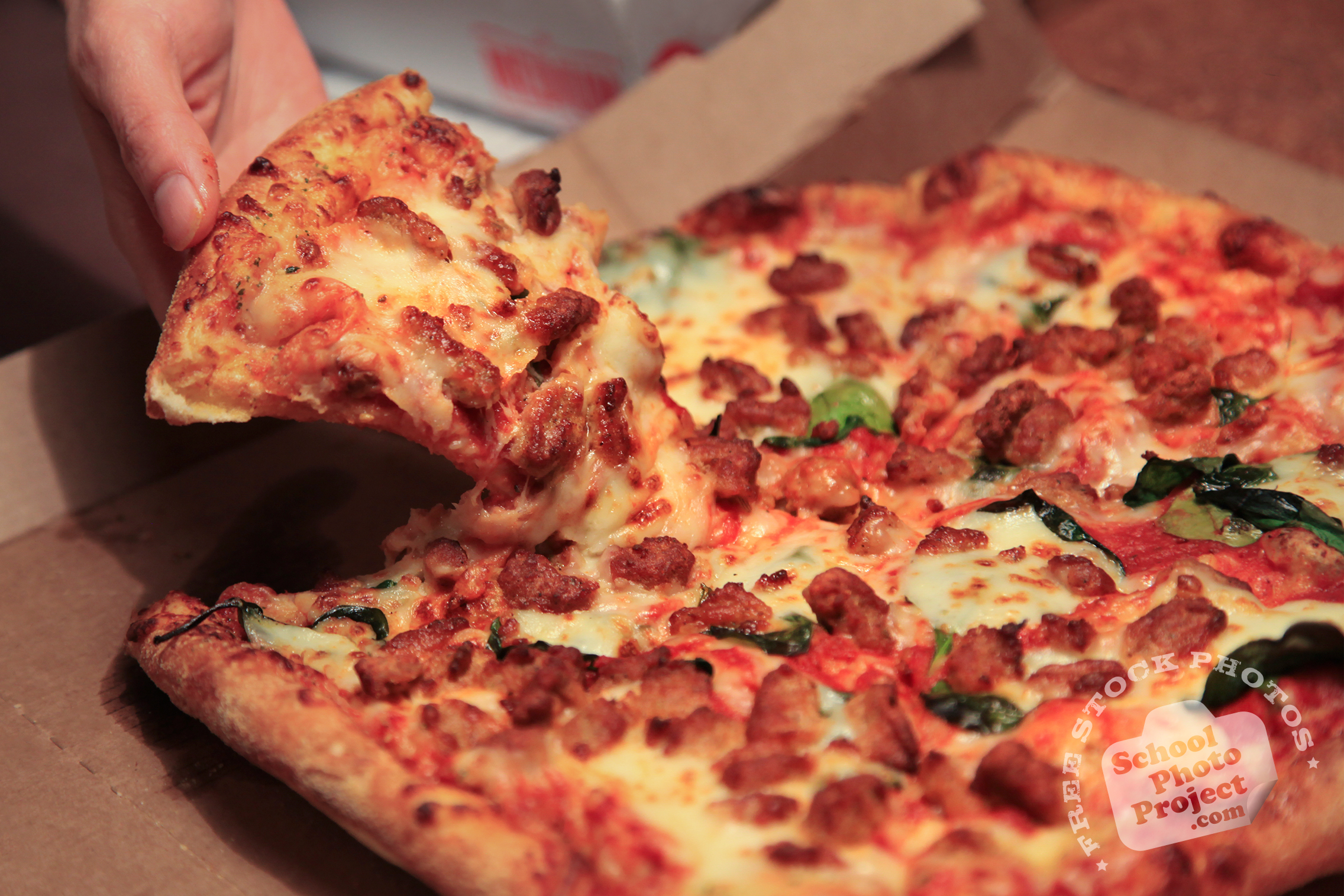 | Free Photo Tags: pizza, pizza slice, sausage spinach pizza, serving pizza, fresh pizza, bakery photo, free photo, free images, stock photos, stock images, royalty-free image, school photo project use |