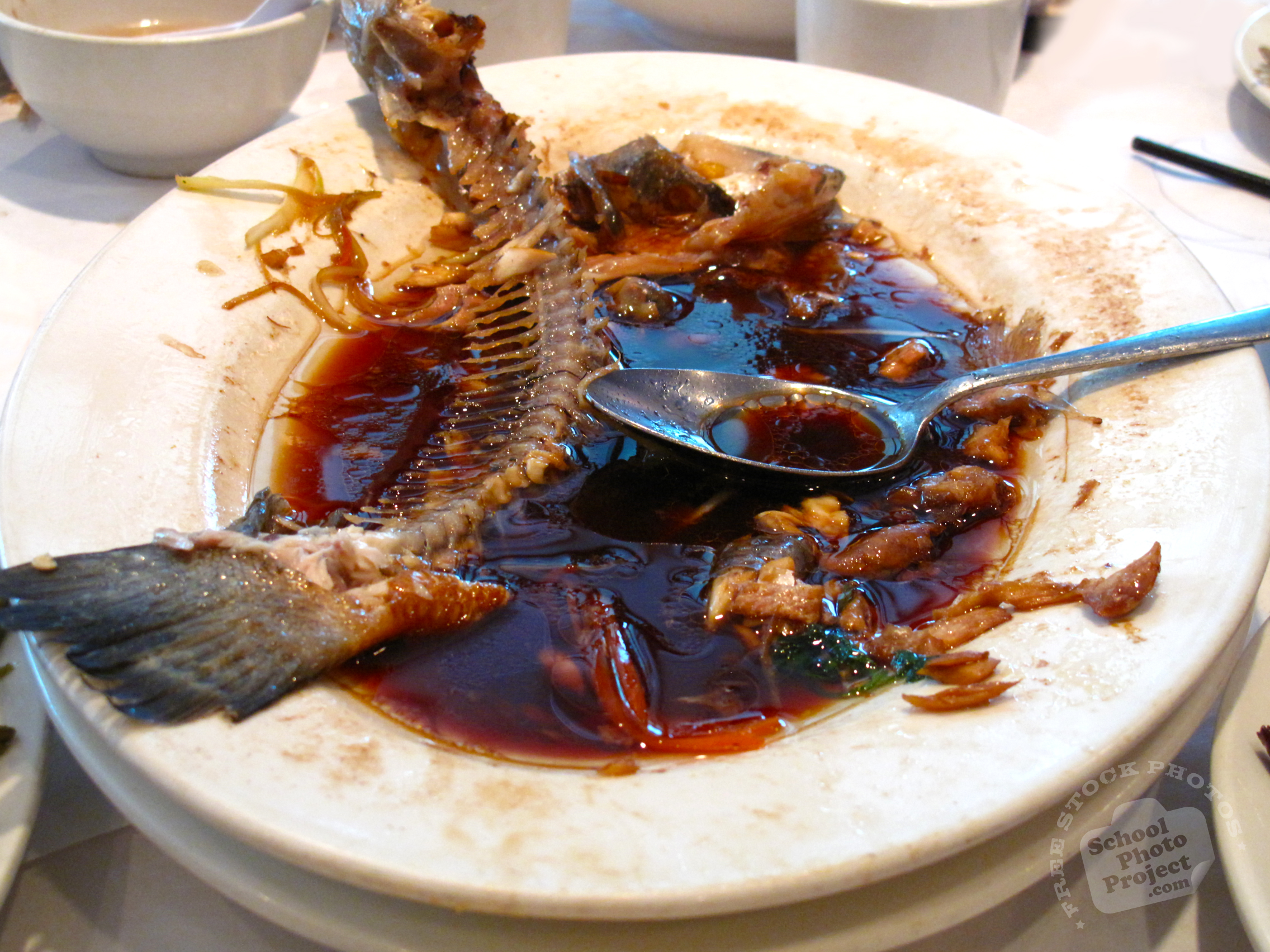 | Free Photo Tags: fish bones, leftover food, cast-offs, steamed fish, steamed carp, seafood photo, Chinese food, Chinese cuisine, traditional food, free photo, free images, stock photos, stock images, royalty-free image, school photo project use |